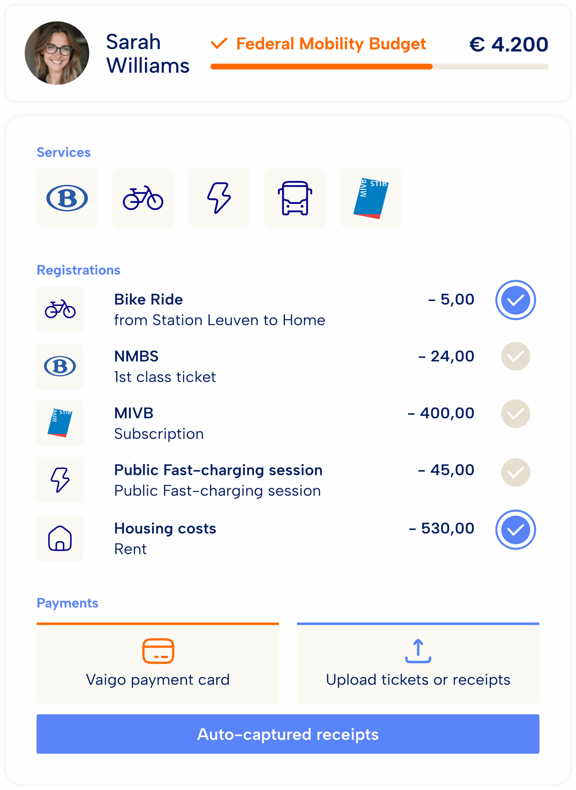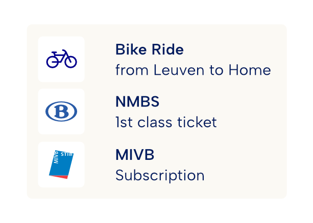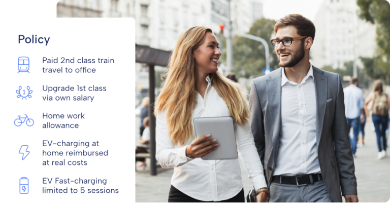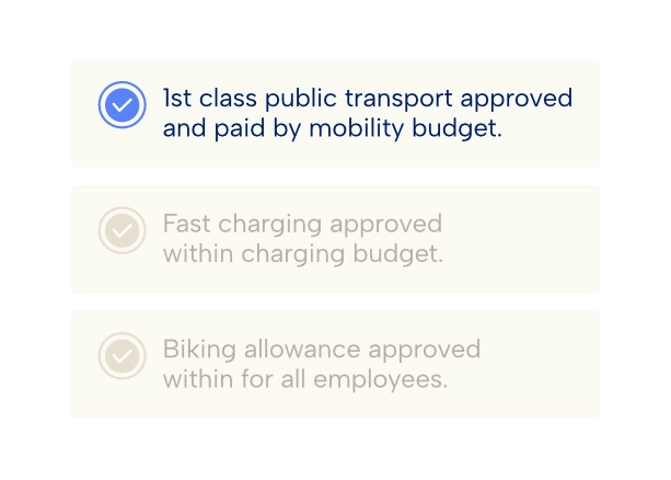 Access all your company mobility benefits — Company car, EV charging, public transport, bike leasing, parking, and more — in one intuitive tool. -